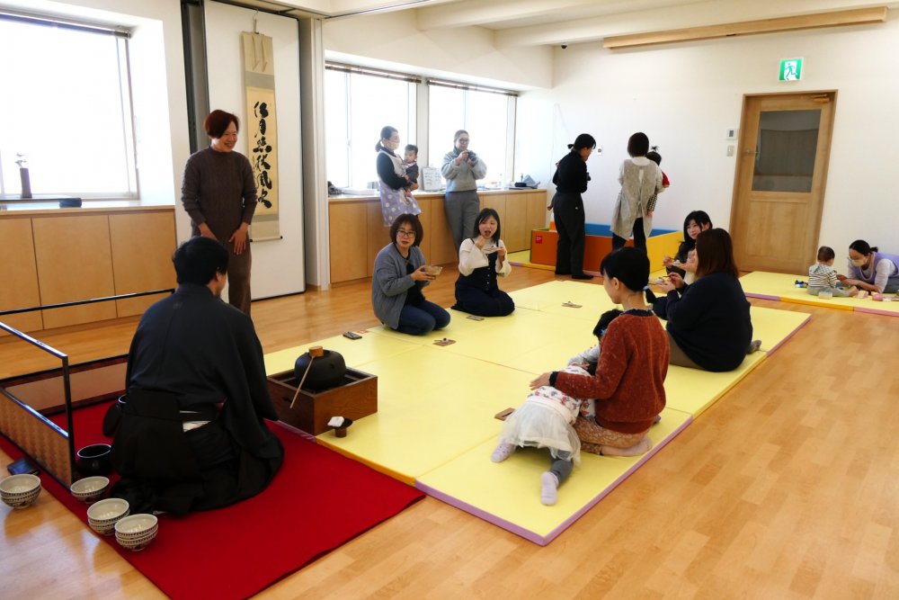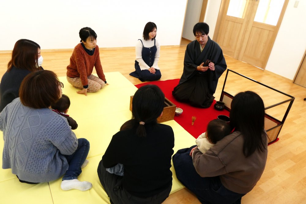 お茶会の作法や使う道具にも興味津々のお母さん方。質問も飛び交い、充実した時間になった様子に職員もうれしくなりました♪