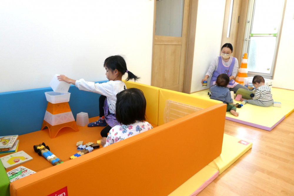 お母さんから離れて職員とゆっくり過ごす子もちらほら…