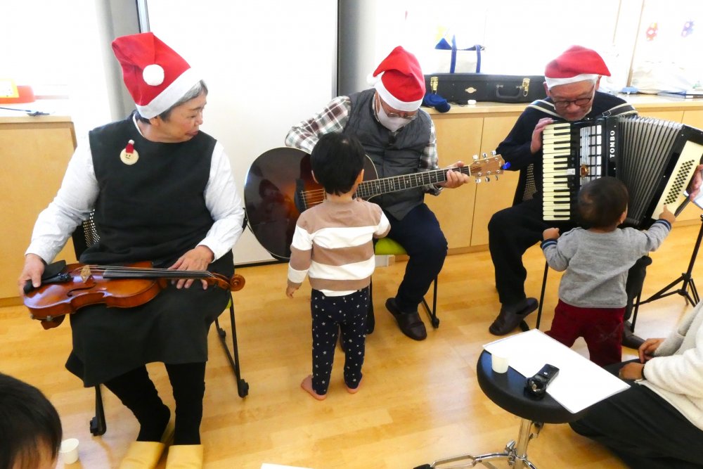 素敵な音色が響き渡り、子どもたちは身体を動かす子、うっとりする子、「なんのおと?」と興味を示す子といろいろ…。